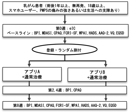 「乳がん切除後疼痛症候群に対するスマートフォンによる心理療法の開発と有用性 :分散型臨床試験基盤を用いた多施設共同シャム対照二重盲検 ランダム化並行群間比較試験」について